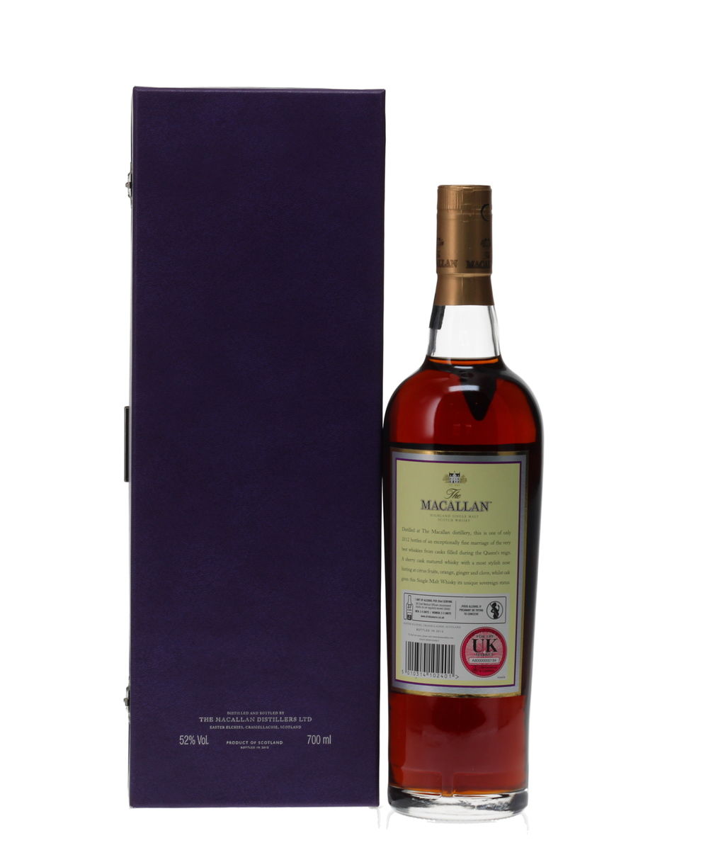A very special Macallan produced for a very special occasion, celebrating the Diamond Jubilee of Queen Elizabeth II. This whisky has been drawn from the cask on February 8th, the date of the Queen's accession, and bottled at a strength of 52% to signify the beginning of her reign in 1952. Finally, to represent the 60th year of her reign, this special whisky is limited to just 2012 bottles.