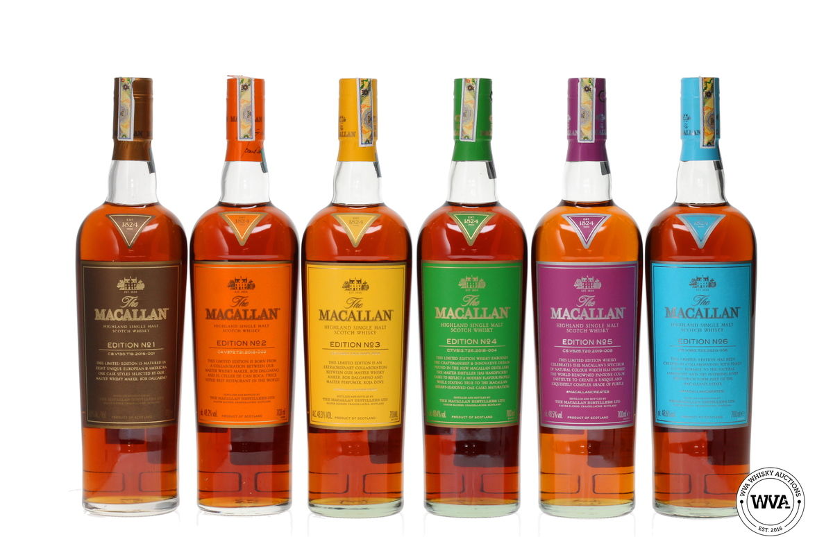 Macallan Edition No.6 - The final edition takes inspiration from the landscape around the distillery. The liquid has been matured exclusively in sherry-seasoned casks - a select combination of first and second fill American and European Oak. 48.6%